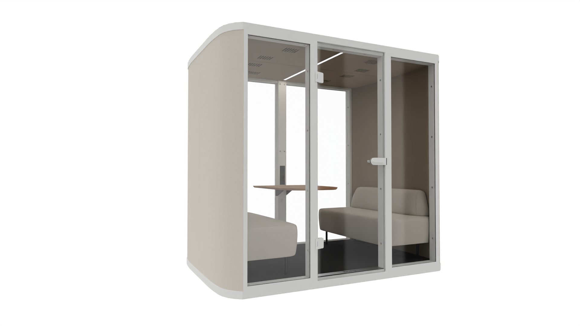 De eCell 4 MINI is een compacte, volledig afgesloten bel- en vergaderruimte voor maximaal vier personen. Ontworpen voor moderne kantooromgevingen waar stilte en concentratie essentieel zijn. De booth combineert hoogwaardig design met bewezen akoestische prestaties